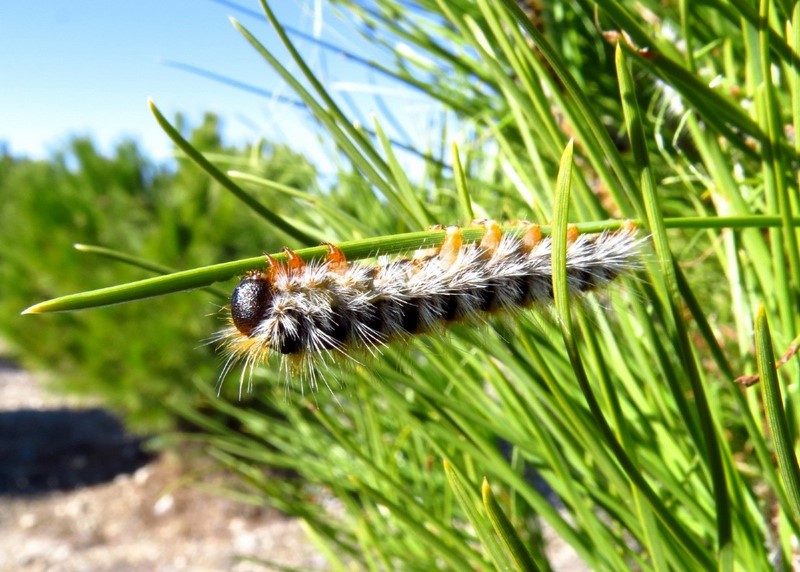 Las orugas de esta plaga autóctona se alimentan de muchos tipos de pinos, lo que provoca una seria defoliación y un gran daño a largo plazo. También puede afectar a cedros y abetos.